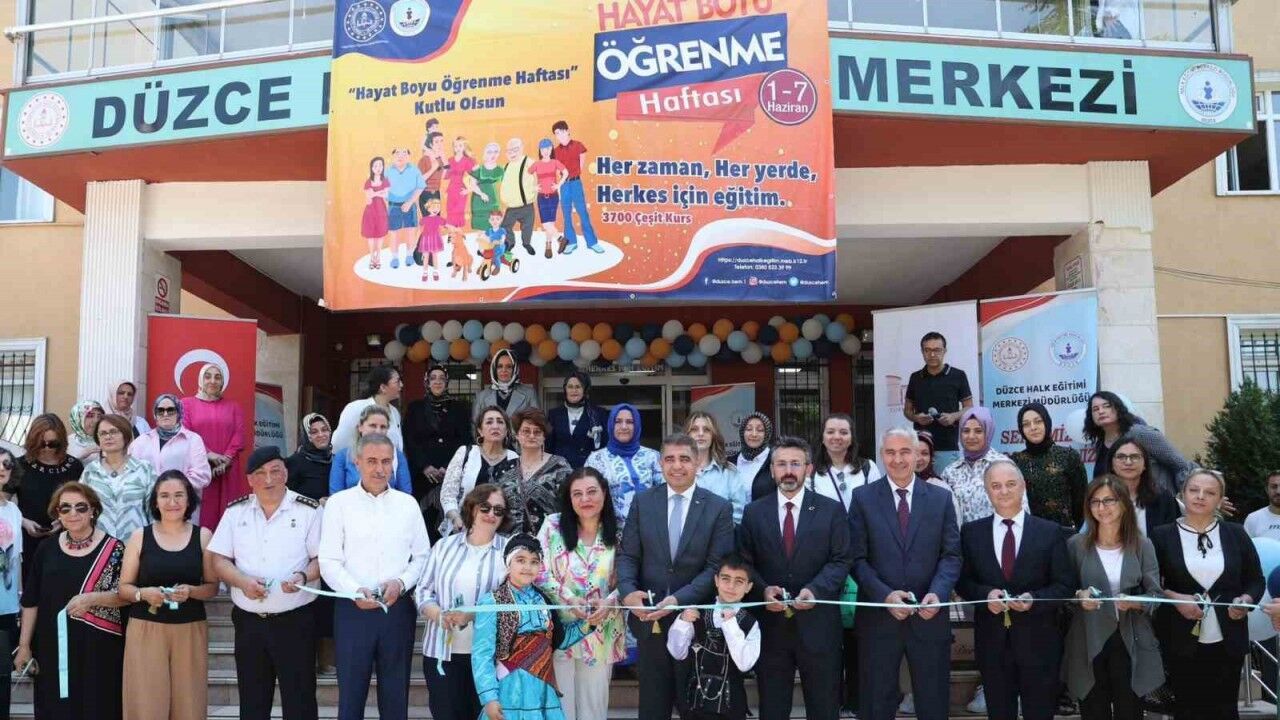 Düzce’de kursiyerlerin ilgi gösterdiği Halk Eğitim Merkezi, yıl sonu sergisini açtı. 1-7 Haziran Hayat Boyu Öğrenme haftası etkinlikleri çerçevesinde merkezde kurulan sergiyi Düzce Valisi Selçuk Aslan ve eşi Pınar Ölmez Aslan açtı. bin 64 kursta eğitim alan yaşları 5 ila 70 arasında ki 19 bin 617 kursiyerin hazırladığı emekleri inceleyen Vali Aslan, " “Her zaman, her yerde, herkes için eğitim” anlayışıyla faaliyetlerini gösteren merkez bünyesindeki bin 64 kursta eğitim alan, yaşları 5 ila 70 arasındaki 19 bin 617 kursiyerin emeklerinden ötürü teşekkür ediyorum" ifadelerini kullandı.