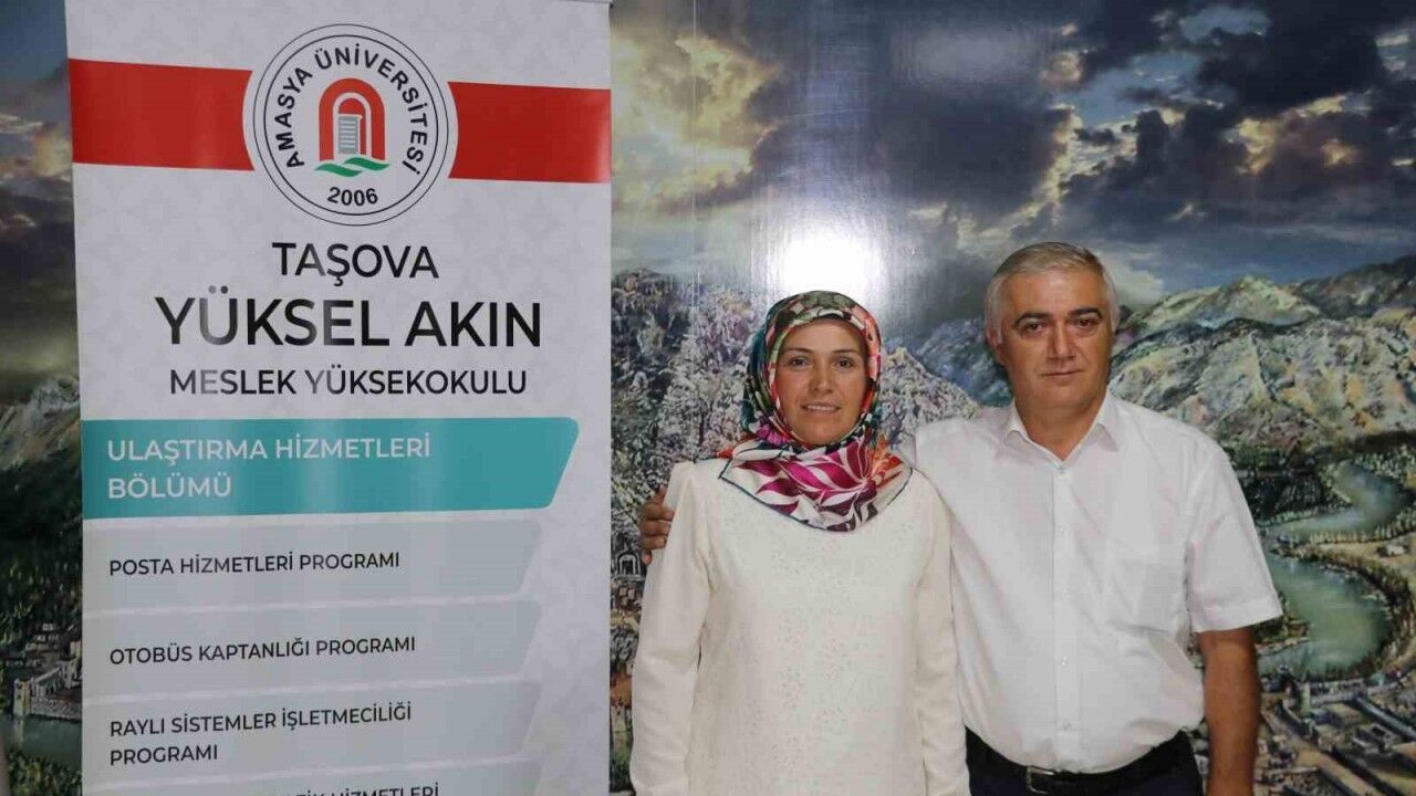 Taşova Yüksel Akın Meslek Yüksekokulu Müdürü Dr. Öğretim Üyesi Ercan Şahin ise “Çiftimiz Muammer Bey ve Fadime Hanım, yüksekokulumuz programlarına kayıt yaptırdılar. Muammer Bey, raylı sistemler makine teknolojisi programına, Fadime Hanım ise posta hizmetleri programına kayıt yaptırdılar. Ben kendilerini tebrik ediyorum, başarılar diliyorum” ifadelerini kullandı.