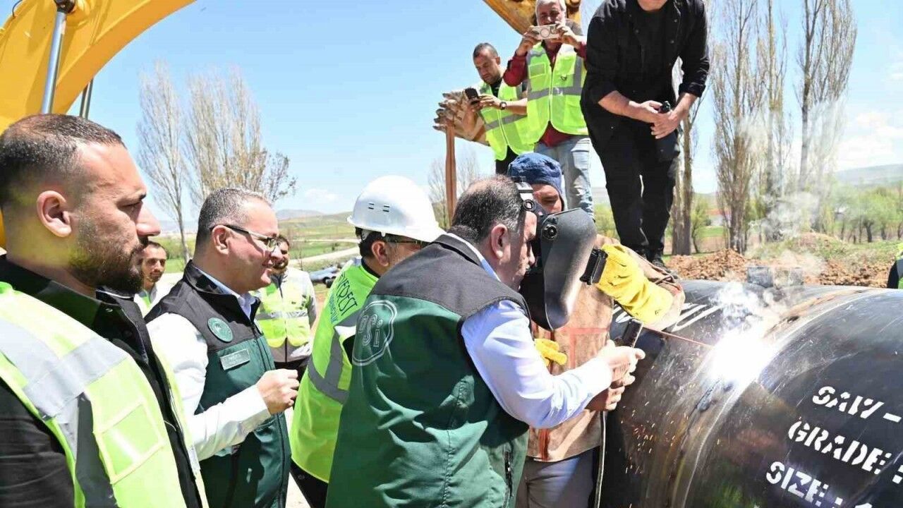 57 bin 700 dekar tarım arazisini sulayacak 191bin 526 metre uzunluğundaki sulama borularına ilk kaynak vuruldu