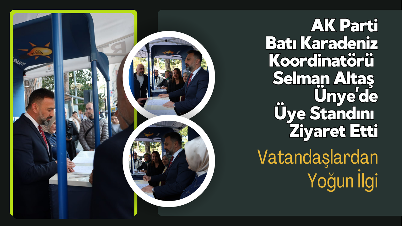 AK Parti Batı Karadeniz Koordinatörü Selman Altaş, Ünye’de kurulan parti üye standını ziyaret ederek çalışmalara destek verdi. Parti teşkilatıyla bir araya gelen Altaş, sahada yürütülen üye çalışmalarına bizzat katılarak yeni üyelerin kayıt işlemlerini gerçekleştirdi.