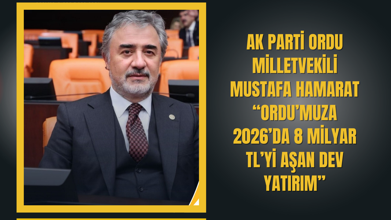 AK Parti Ordu Milletvekili Mustafa Hamarat, hükümetin güçlü desteğiyle Ordu’nun her alanda kalkınmasına yönelik yatırımların kararlılıkla sürdüğünü açıkladı. Sağlıktan ulaşıma, eğitimden tarıma kadar birçok alanda hayata geçirilen projelerle şehrin geleceğinin birlikte inşa edildiğini vurgulayan Hamarat, 2026 yılı için Ordu’ya toplam 8 milyar 72 milyon 26 bin TL tutarında yatırım öngörüldüğünü duyurdu.