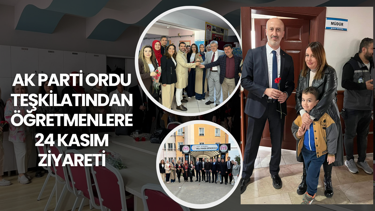 24 Kasım Öğretmenler Günü kapsamında AK Parti Ordu İl Yönetim Kurulu üyeleri ile İl Kadın ve Gençlik Kolları Başkanlıkları tarafından kent genelinde okul ziyaretleri gerçekleştirildi. Ziyaretlerde öğretmenlere çiçek takdim edilerek günleri kutlandı.