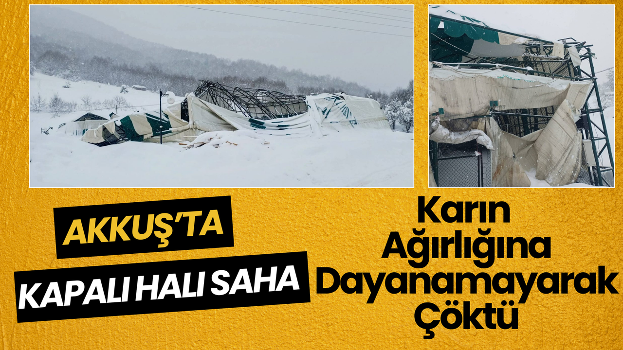 Ordu’nun Akkuş ilçesinde etkili olan yoğun kar yağışı ve sert kış koşulları, bir yapının daha çökmesine neden oldu. İlçede bulunan kapalı halı saha, çatısında biriken kar kütlesinin ağırlığına dayanamayarak yıkıldı.