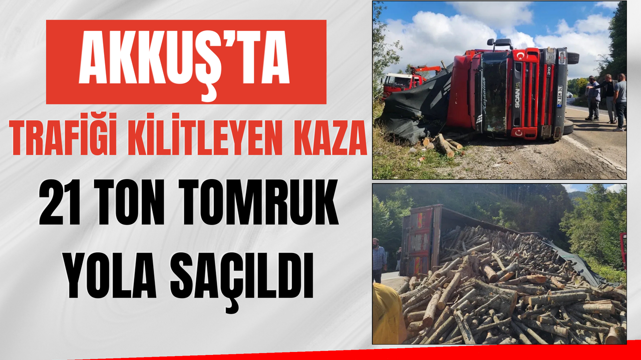 Kaza, Çamalan Mahallesi Ünye-Akkuş-Niksar yolu üzerinde meydana geldi. Edinilen bilgiye göre, Metin E.’nin (42) kullandığı 52 ABM 343 plakalı kamyon, seyir halindeyken virajı döndüğü sırada makasının kırılması sonucu, kasasında bulunan 21 ton tomrukla birlikte devrildi. Kazayı gören çevredekiler 112 Acil Çağrı Merkezi’ne ihbarda bulundu. Olay yerine kısa sürede sağlık ve polis ekipleri sevk edildi. Vatandaşların yardımıyla kamyondan çıkarılan sürücünün kazayı yara almadan atlattığı öğrenildi. Kaza nedeniyle bir süre trafiğe kapanan Akkuş-Niksar karayolu, devrilen kamyon ve tomrukların yoldan kaldırılmasının ardından yeniden ulaşıma açıldı.