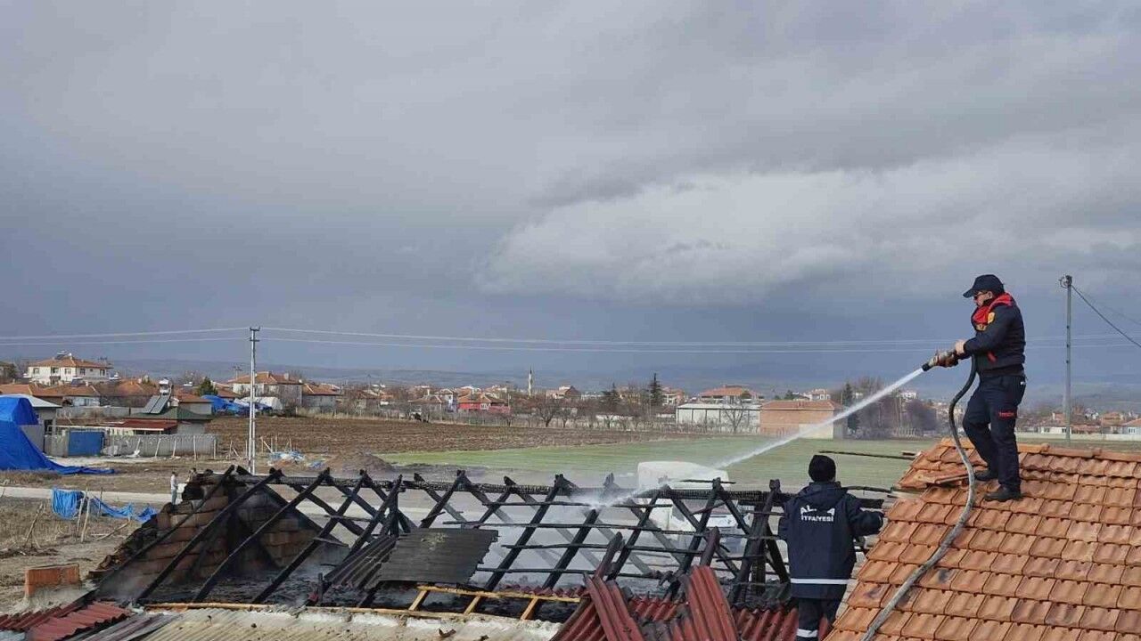 Yangında evin çatısı tamamen yanarken, olayla ilgili başlatılan soruşturma sürüyor.