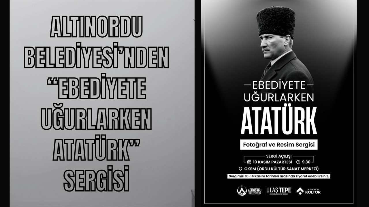 Altınordu Belediyesi, emekli Albay Sermet Taktak arşivinden Ulu Önder Gazi Mustafa Kemal Atatürk’ün vefatının akabinde, naaşının İstanbul’dan Ankara’ya taşınması sürecine ilişkin birçoğu ilk kez bir sergide gün yüzüne çıkacak nadisw fotoğrafların yer alacağı 'Ebediyete Uğurlarken Atatürk Fotoğraf ve Resim Sergisi açacak. Ressam Osman Kılıç’ın da Atatürk portrelerinden oluşan özel seçkisinin görücüye çıkacağı sergi 10 Kasım 2025 Pazartesi günü saat 9.30’da Ordu Kültür Sanat Merkezi’nde kapılarını açacak. Sergi, 14 Kasım'a kadar ziyaret edilebilecek.