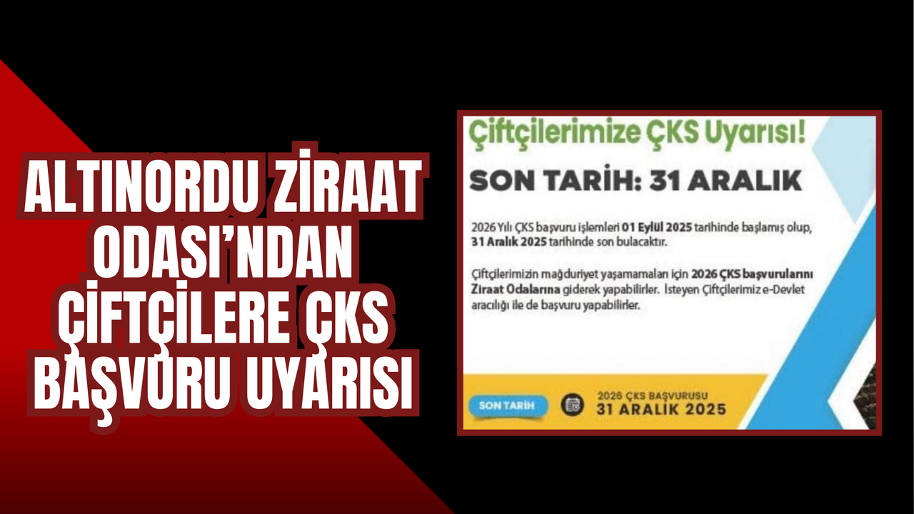 Altınordu Ziraat Odası Başkanlığı, 2026 üretim yılı Çiftçi Kayıt Sistemi (ÇKS) başvurularının devam ettiğini hatırlatarak çiftçilere önemli bir uyarıda bulundu. Yapılan açıklamada, başvuruların 1 Eylül 2025’te başladığı ve 31 Aralık 2025’te sona ereceği vurgulandı.