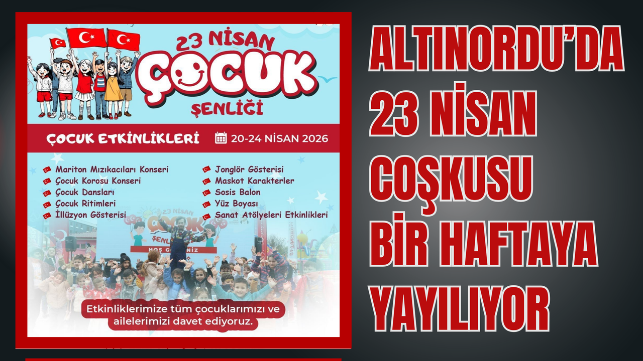 23 Nisan Ulusal Egemenlik ve Çocuk Bayramı kapsamında Ordu’nun Altınordu ilçesinde bu yıl geniş katılımlı ve çok sayıda etkinliği kapsayan bir kutlama programı hazırlandı. Mustafa Kemal Atatürk tarafından çocuklara armağan edilen bayram, kent genelinde bir hafta boyunca sürecek etkinliklerle kutlanacak.