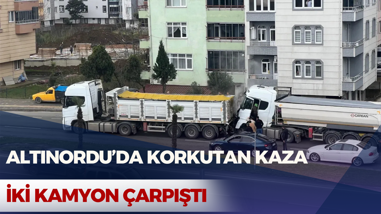 Ordu’nun Altınordu ilçesinde iki kamyonun karıştığı trafik kazası paniğe neden oldu. Durugöl Mahallesi mevkiinde Atatürk Bulvarı üzerinde meydana gelen kazada, aynı yönde seyir halinde olan iki kamyon henüz belirlenemeyen bir nedenle çarpıştı.