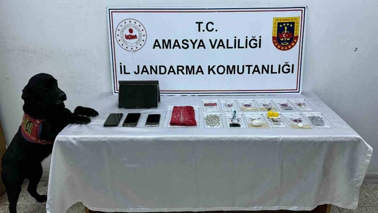 Edinilen bilgiye göre, Amasya İl Jandarma Komutanlığı ekiplerince uyuşturucu madde ile mücadeleye yönelik yapılan çalışmalar sonucunda C.Z, E.B, V.P ve H.F.K isimli şahısların Ankara’dan uyuşturucu madde getirecekleri bilgisine istinaden şüphelilerin kullandığı araçta uyuşturucu madde arama köpeği Puslu ile rama yapıldı. 33 gram metamfetamin, 110 extacy, 2 gram bonzai, 14 sentetik ecza hap, 1 hassas terazi, 4 uyuşturucu kullanma aparatı, tespit edilerek el konuldu.