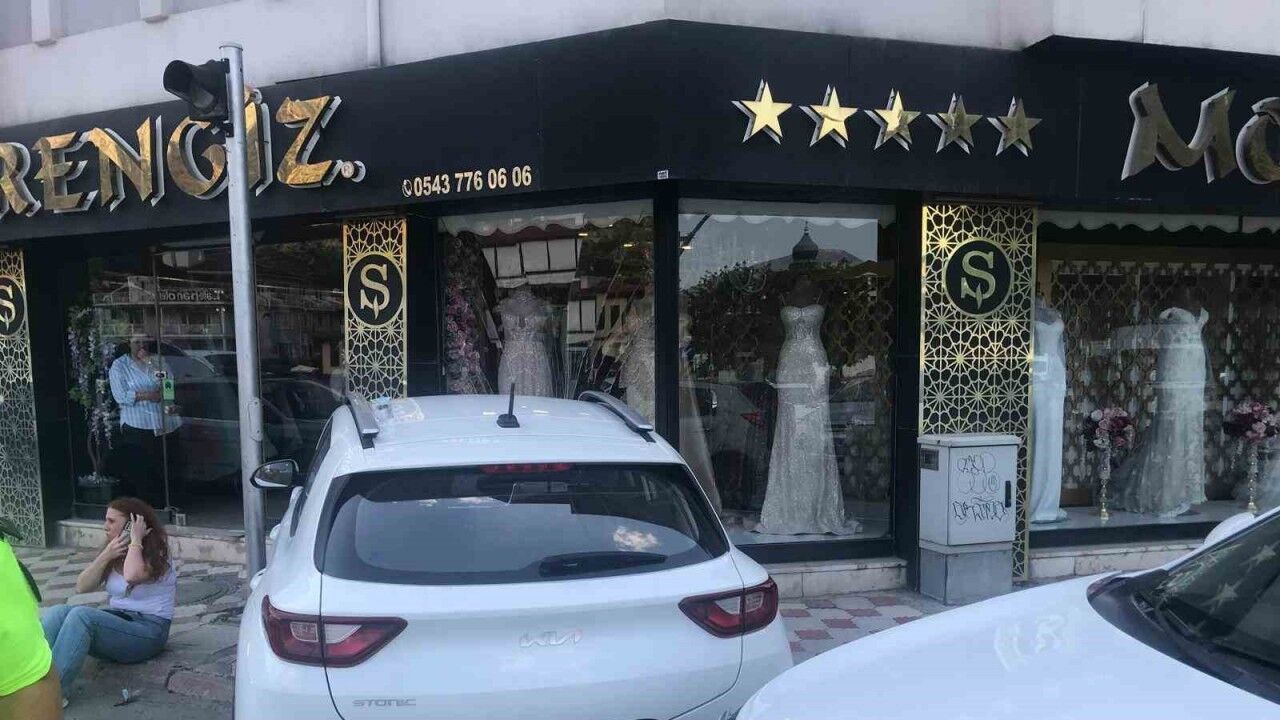 Kaza, Şamlar Mahallesi Şehit Ahmet Özsoy Caddesi’nde meydana geldi. Edinilen bilgiye göre, Feride Hande Y. idaresindeki 14 BH 293 plakalı otomobil, kavşakta İrfan Kamil A. yönetimindeki 05 AAT 396 plakalı otomobille çarpışarak savruldu. Kontrolden çıkan araç, gelinlik mağazasının vitrinine çarparak durabildi. Sürücü geri çekilen otomobili panikleyerek yeniden vitrine doğru sürdü. Vitrin camlarının kırıldığı kazada iki araçta da maddi hasar oluştu. Sürücüler ise kazayı şans eseri yaralanmadan atlattı. Kazadan saniyeler öncesi vitrinin önünden 3 vatandaşın da geçtiği görüldü.