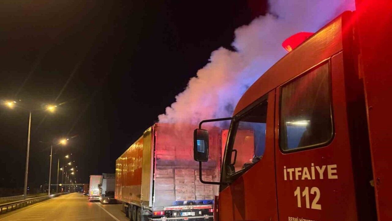 Amasya’nın Merzifon ilçesinde kuruyemiş yüklü TIR’ın dorsesinde yangın çıktı. Çevredekileri korkutan yangın itfaiye ekiplerince söndürüldü.