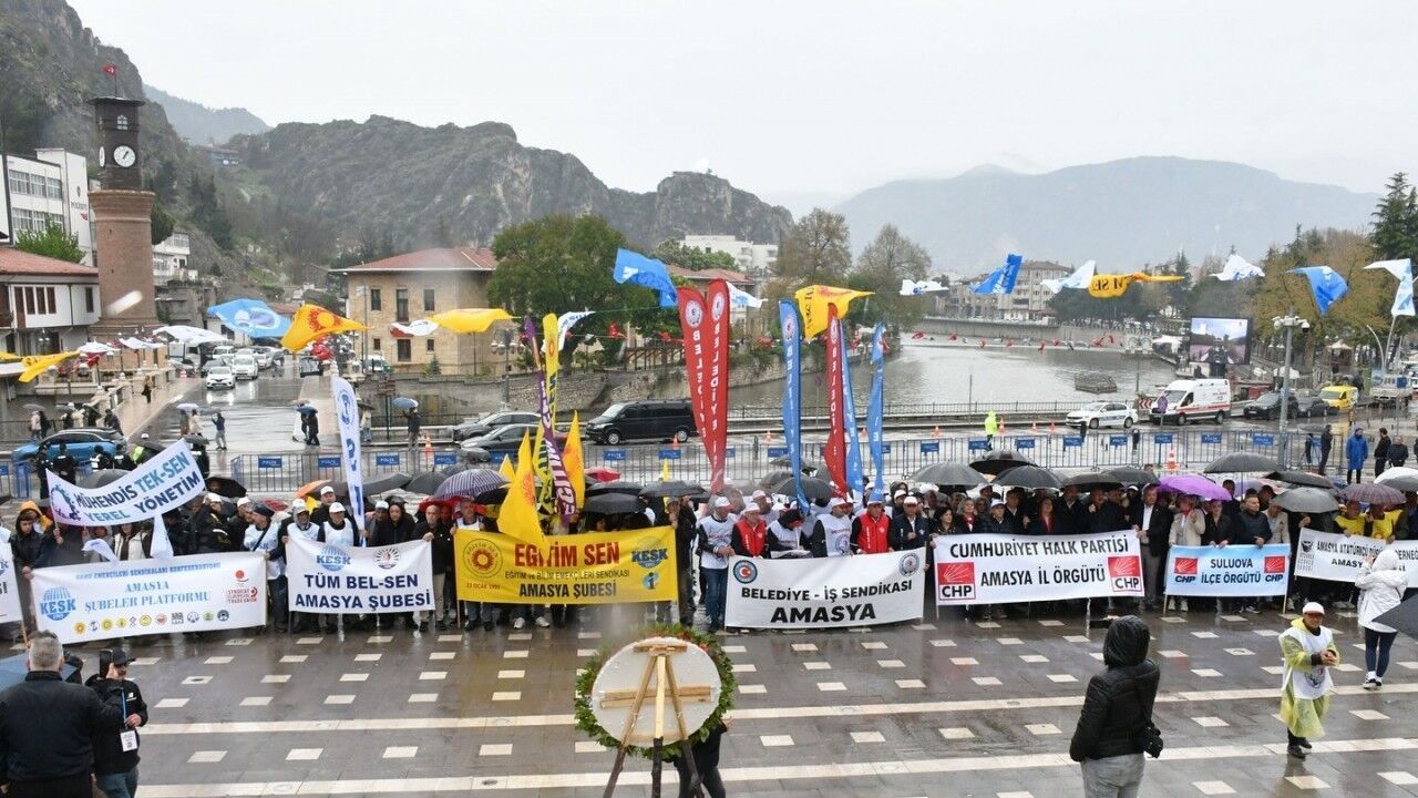 Amasya’da 1 Mayıs Emek ve Dayanışma Günü kutlamalarının adresi ise Yavuz Selim Meydanı’ydı. Sağanak yağmur altında şemsiyelerle gerçekleştirilen miting de 1 Mayıs tertip komitesi tarafından konuşmaların yapılmasının ardından yağmur altında söylenen türkülerle halay çekildi. Sağlık Emekçileri Sendikası Başkanı Satılmış Ayan, "Olumsuz hava şartlarına rağmen alanları dolduran, bu güzel günü kutlayan tüm arkadaşlara selam olsun" dedi.