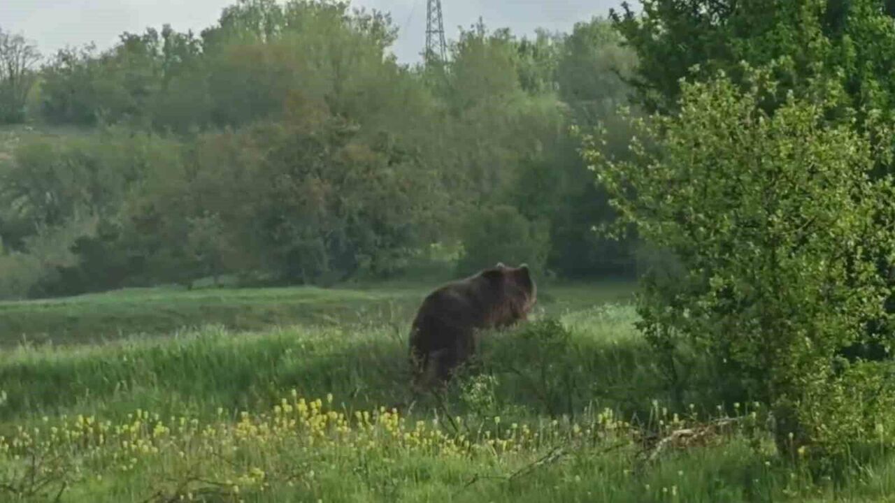 Yolun karşısına geçtikten sonra boş araziye doğru koşarak uzaklaşan ayı, sürücü tarafından cep telefonu kamerasıyla kaydedildi.