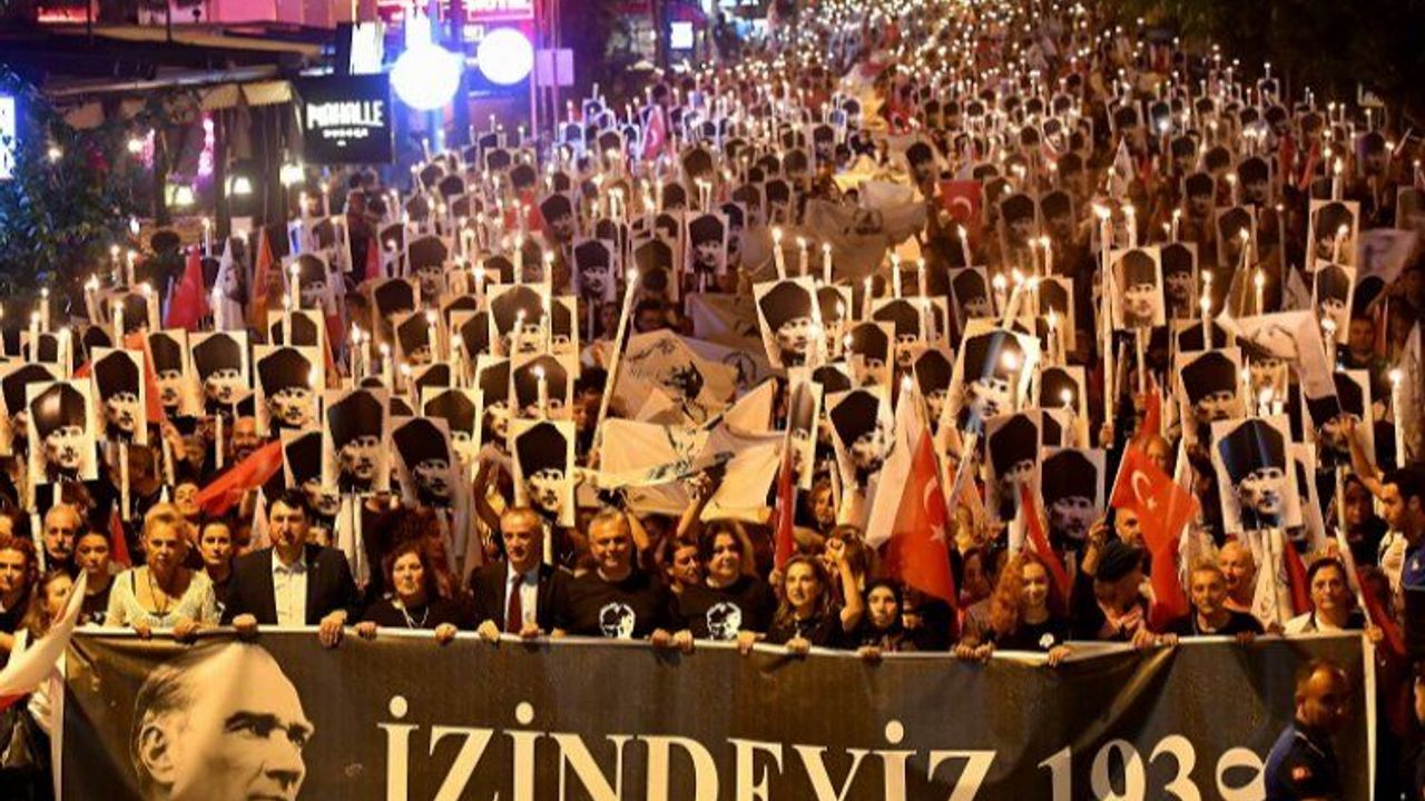 Antalya’da Muratpaşa Belediyesi, Gazi Mustafa Kemal’in ebediyete intikalinin 85’inci yılı anısına ‘Ata’ya Saygı Yürüyüşü’ düzenledi. Binlerce Antalyalı ellerinde meşaleler, Türk bayrakları ve Atatürk posterleriyle Muratpaşa Atatürk Kent Meydanı’ndan başlayan fener alayına katıldı.ANTALYA (İGFA) - Antalya’da Muratpaşa Belediyesi, Gazi Mustafa Kemal’in ebediyete intikalinin 85’inci yılı anısına ‘Ata’ya Saygı Yürüyüşü’ düzenledi. Binlerce Antalyalı ellerinde meşaleler, Türk bayrakları ve Atatürk posterleriyle Muratpaşa Atatürk Kent Meydanı’ndan başlayan fener alayına katıldı.