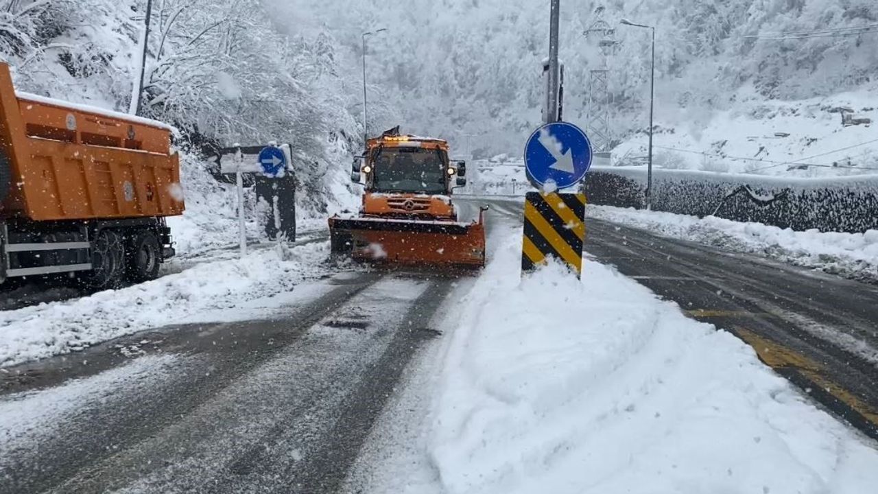 Hopa karayolunda kar nedeniyle trafikte aksamalar yaşansa da ekiplerin müdahalesiyle kontrollü geçişler devam ediyor.