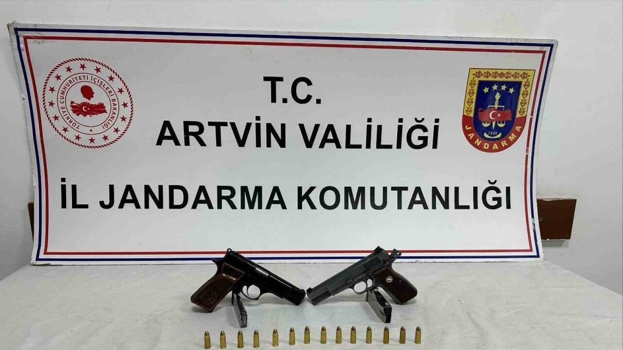 Artvin’in Borçka ilçesinde silah seslerinin duyulması üzerine harekete geçen jandarma ekipleri, 2 adet tabanca ve mühimmat ele geçirdi.