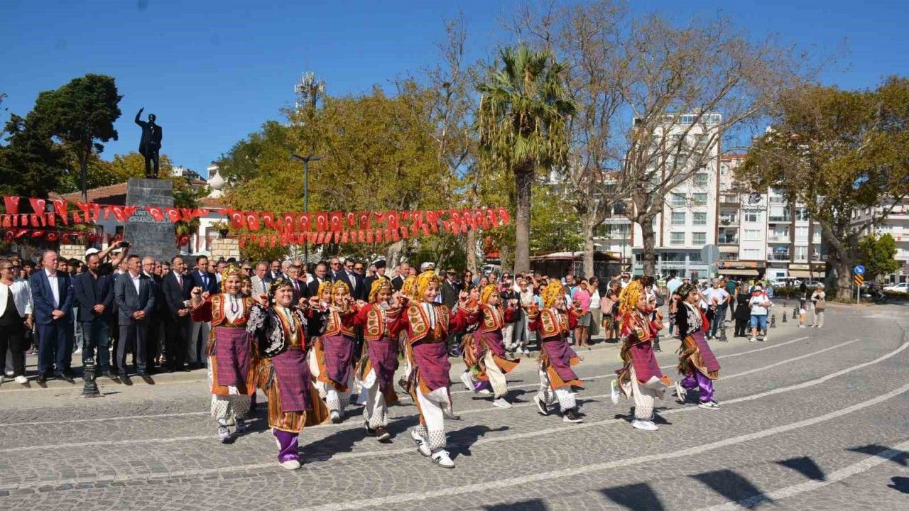 İskele Meydanı’nda gerçekleşen tören halk oyunları gösterisi ile başladı. Daha sonra meydanda toplanan vatandaşlar ve devlet erkanı, Atatürk’ün Sinop’a gelişini simgeleyen ve Türk bayraklarıyla donatılan tekneyi karşıladı. 97 yıl önce Atatürk’ün kente gelişi sırasında çekilen fotoğrafı ve Türk bayrağını taşıyan öğrenciler tekneden inerek protokolü selamladı. Tekneden inen öğrenciler tarafından Türk bayrağı, Sinop Valisi Mustafa Özarslan’a teslim edildi. Vali Özarslan öğrencilerin verdiği Türk bayrağını öperek, öğrencilere teşekkür etti. Vali Özarslan, Sinop Belediye Başkan Yardımcısı Hikmet Karaduman ve beraberindeki heyet daha sonra kortej eşliğinde Atatürk’ün kente geldiğinde yürüdüğü yoldan geçerek Cumhuriyet Meydanı’na ulaştı. Protokol üyeleri, yürüyüş boyunca vatandaşları selamladı. Vatandaşlar da yürüyüşe katılanlara alkışlarıyla eşlik etti.
