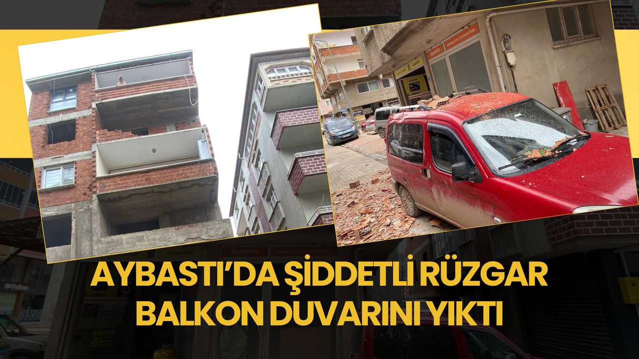 Aybastı ilçesinde etkili olan şiddetli rüzgar bir binanın balkon duvarını yıktı. Kopan parçaların düşmesi sonucu park halindeki bir araçta maddi hasar meydana geldi.