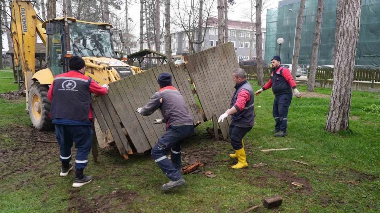 Düzce kent merkezinde ağaçlar içinde vatandaşların nefes almaları için oluşturulan Kent Park, Düzce Belediyesi Destek Hizmetler Müdürlüğü ile Park ve Bahçeler Müdürlüğü ekipleri tarafından bakıma alındı. Gerçekleştirilen ortak çalışma ile 11 dönümlük park içindeki aydınlatma direklerinin bakımları yapılırken, deformeler ve kırılmalar olan ahşap yürüyüş ve oturma alanları da sökülmeye başlandı. Sık sık vandallar tarafından ahşap kısımlarına zarar verilen ve düzenli olarak bakım çalışmaları yapılan park içinde yaya ve bisikletli vatandaşları tehlikeye sokacak her türlü engel ortadan kaldırıldı.