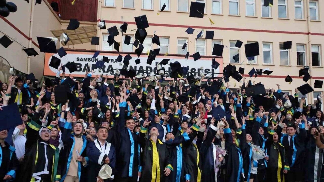 Mezuniyetin simgelerinden biri olan bayrak ve flama, 12. sınıf öğrencileri tarafından 11. sınıf öğrencilerine teslim edildi. Törenin en heyecanlı anı ise, geleneksel kep atma seremonisi oldu. Bafra Anadolu Lisesi emekli öğretmeni Mehmet Eser’in komutuyla öğrenciler kep atarak mezuniyetlerini kutladı.