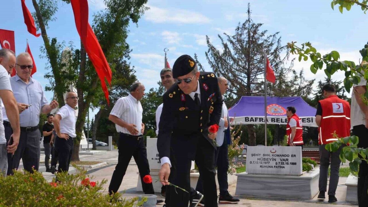 Anma programı kapsamında sabah saatlerinde Bafra Asri Mezarlığı’nda bulunan Garnizon Şehitliği ziyaret edildi. Programa Kaymakam Dr. Mustafa Altınpınar, AK Parti Milletvekili Orhan Kırcalı, Belediye Başkanı Hamit Kılıç, İlçe Emniyet Müdür Vekili Başkomiser Mehmet Yıldız, İlçe Jandarma Komutanı Binbaşı Gürcan Özdilek, siyasi parti temsilcileri, daire amirleri, sivil toplum kuruluşu temsilcileri, şehit yakınları ve vatandaşlar katıldı.