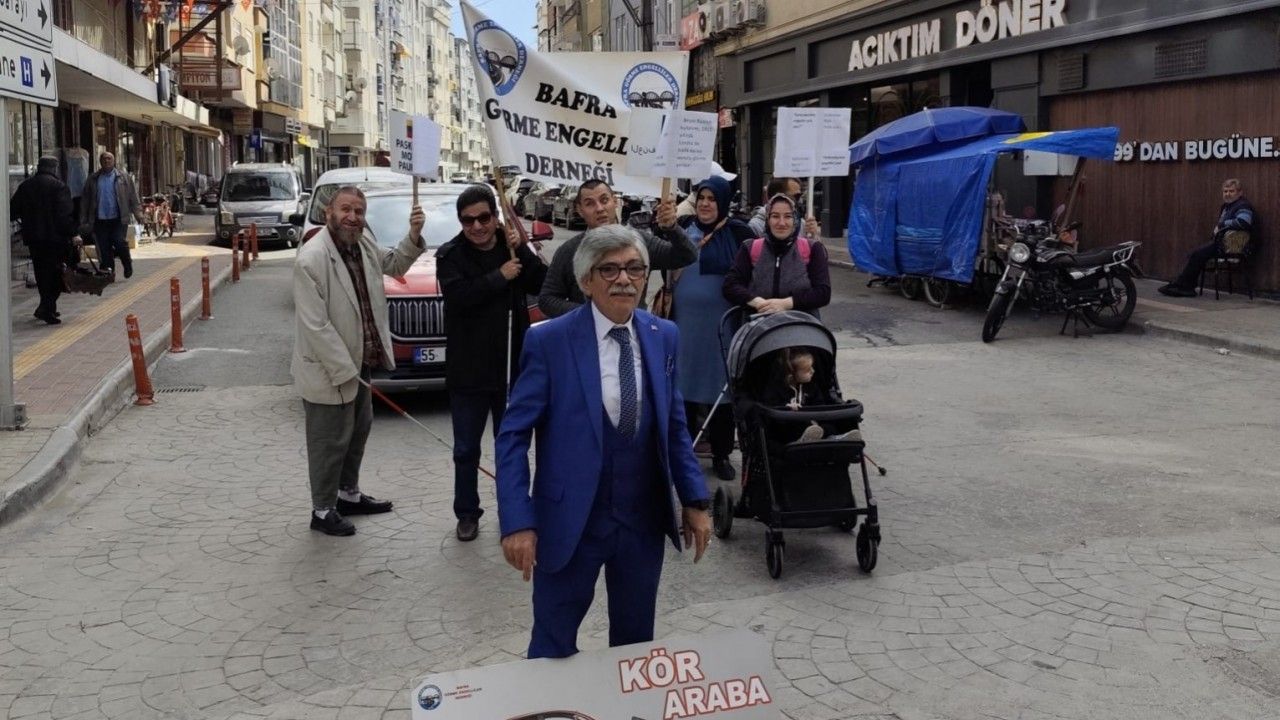 Samsun’un Bafra ilçesinde, 15 Ekim Dünya Beyaz Baston Görme Engelliler ve Güvenlik Günü kapsamında farkındalık yürüyüşü düzenlendi.
