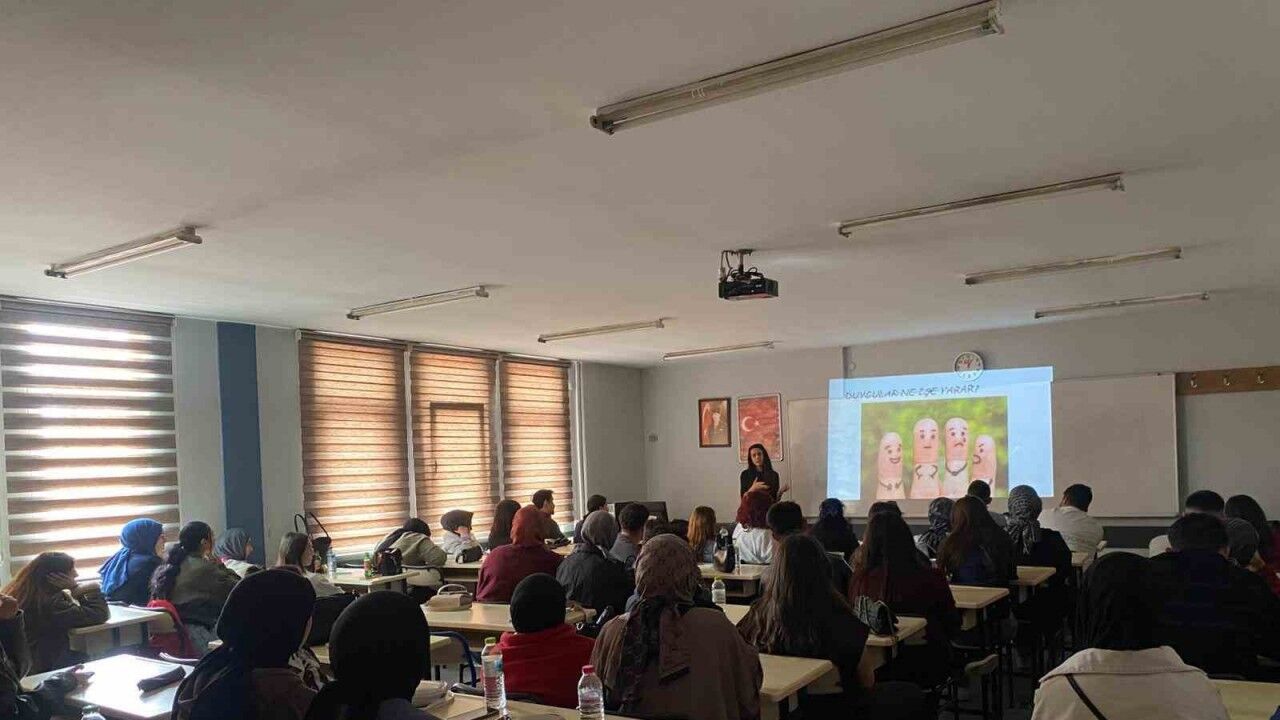 DÜZCE (İHA) – Düzce’de bağımlılıkla mücadele eğitimleri çerçevesinde Düzce Üniversitesi öğrencilerine farkındalık eğitimi verildi.