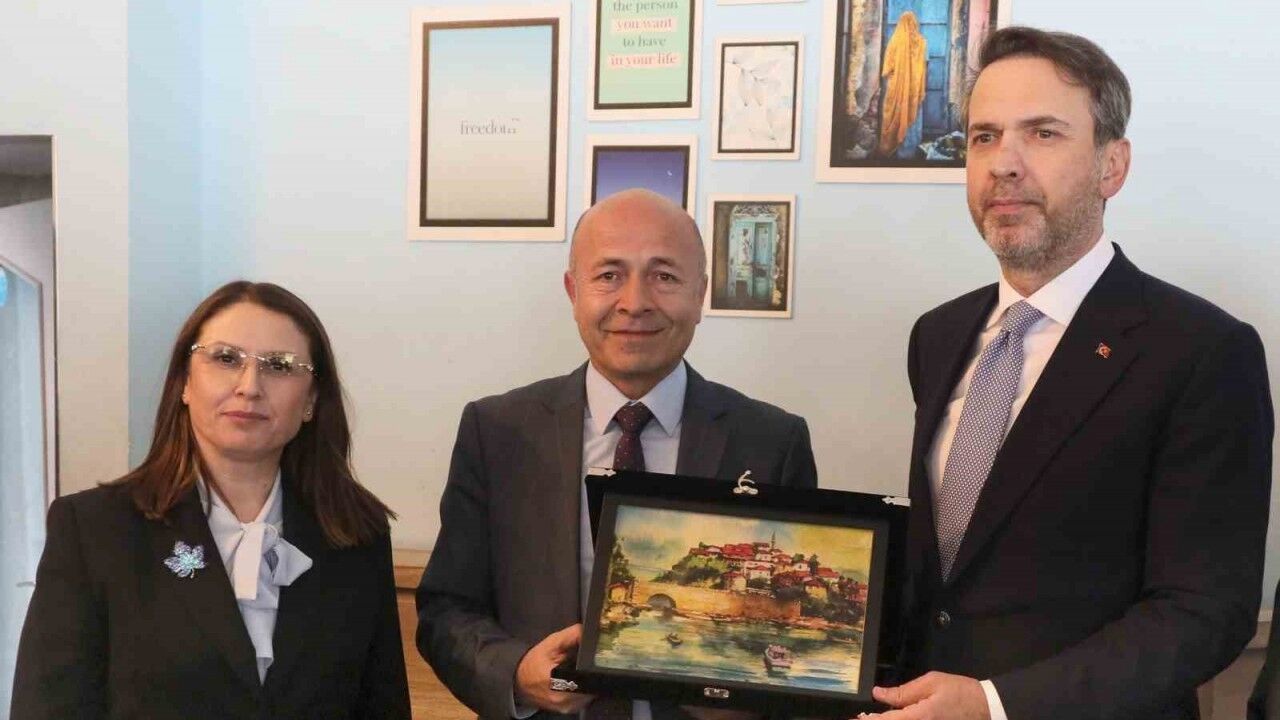 Çakır, "İlçemize Hoş geldiniz" diyerek, Amasra tablosu hediye etti.