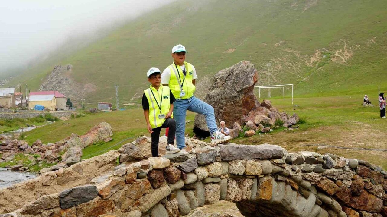 Taşköprü Yaylası’nı ziyaret edenlerin çevreyi kirletmemesini isteyen Görkem Koç (13), "Biz Taşköprü Yaylası’nda hayvancılık yapıyoruz. Yazın burada kalıyoruz, kışın köydeyiz. Bizim buralar tertemizdi ancak buraya gelenler çöp atıyorlar, doğamızı kirletiyorlar. Biz çöpleri topluyoruz yine atıyorlar. Şimdi tertemiz yaptık ama hafta sonu tekrar kirlenecek. Biz bu işten bir şey anlamadık, bu çöpler bizim hayvanlarımızın boğazına kaçıyor. Türk insanlarından çevremizi kirletmemelerini istiyorum. Murat Kurum bakanımız bize hediyeler gönderdi, mektup yolladı. Bizi çevre müfettişi olarak görevlendirdi. Bizden burayı temiz tutmamızı istedi. Biz çöpleri her zaman topluyorduk bir karşılık için toplamıyorduk. Biz çevremiz temiz olsun diye buradaki çöpleri topluyoruz" dedi.