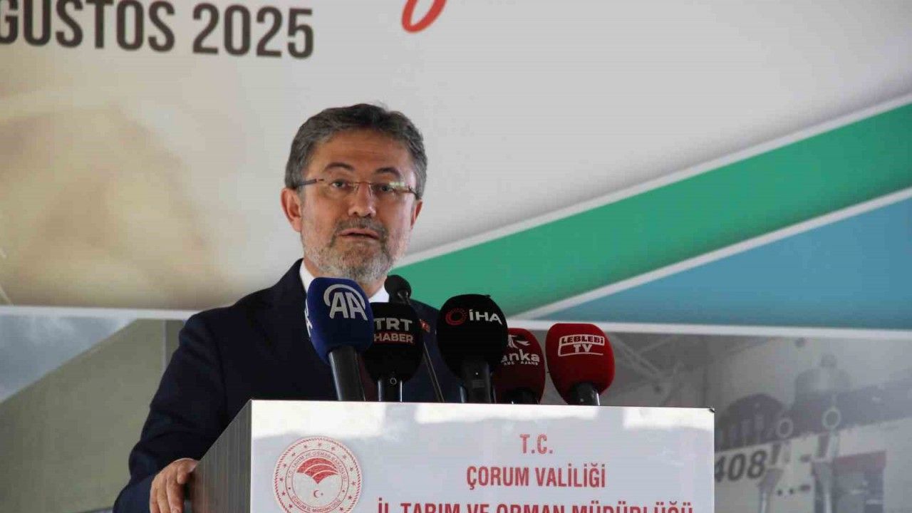 Tarım ve Orman Bakanı İbrahim Yumaklı, bir dizi programa katılmak üzere geldiği Çorum’da Çorum Ziraat Odası Hububat Eleme Tesisi’ni ziyaret etti. Tesiste incelemelerde bulunan Bakan Yumaklı, Ziraat Odası Başkanı Adem Özdemir’den bilgi aldı. Ziyarette konuşan Bakan Yumaklı, "Biz, Türkiye’deki tarımsal üretimin sürdürülebilir olmasını sağlayacağız. Bu üretimin sürdürülebilir olmasının yanı sıra, ürettiğimiz ürünlerin kaliteli olmasını, verimli olmasını, bir birimden alınan ürünün daha fazla olmasını sağlayacağız. Bunun kayıtlı olması bizim için son derece kıymetli ki analizlerimizi doğru yapalım, desteklerimizi, teşviklerimizi, yönlendirmelerimizi buna göre yapalım. Sürdürülebilir, verimli, kaliteli ve kayıtlı üretimi de yatırımlarla bu sektörün gelişmesi için harcamış ve bu yatırımları bu sektöre geri döndürmüş olacağız demiştik. Sertifikalı tohum üretimi, tarımsal üretim için çok önemli başlıklardan bir tanesi. Eğer verimli ve kaliteli bir ürün istiyorsak mutlaka sertifikalı tohum kullanmamız gerekir. Bu yolda çok büyük mesafeler katedilmiş. Benim memleketimin üreticisi, çiftçisi, aradaki farkı görmüş ve bunu sahiplenmiş, önemli oranlarda da sertifikalı tohum üretimine geçmişiz. Tabii sadece bakanlık olarak bizim ‘mevzuatlarımızda sertifikalı tohum olsun’ demek, bunları anlatmak yetmiyor. Aynı zamanda hem üreticilerimizin hem de ziraat odalarımızın bunu benimsemesi, bunun uygulanması için bizimle omuz omuza çalışması gerekiyordu. Bugün bu birlikteliğin en önemli örneklerinden bir tanesini Çorum için hep birlikte yaşıyoruz. Bu tesiste saatte 5 tonluk sertifikalı üretimin, sertifikalı tohumluğun elenmesi söz konusu olacak" dedi.