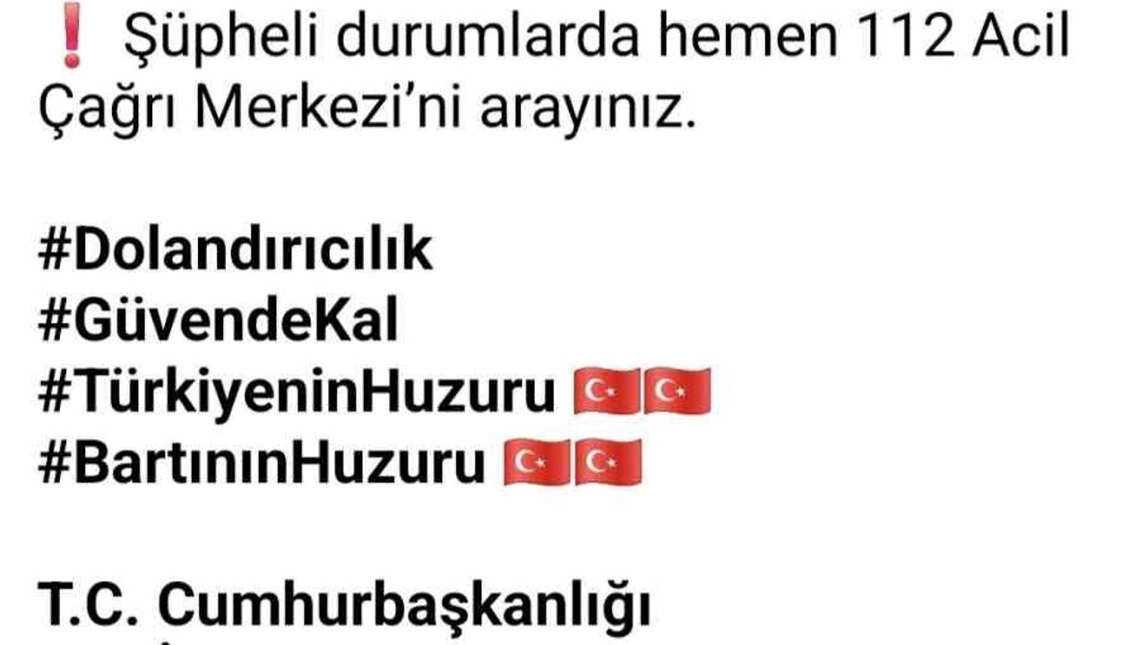 Bartın’da polis, artan dolandırıcılık olaylarını çözümleyerek faillerini tespit ederken, diğer taraftan da benzer olaylarının yaşanmaması için hazırlanan uyarıcı kısa filmler ile vatandaşlar uyarılıyor.