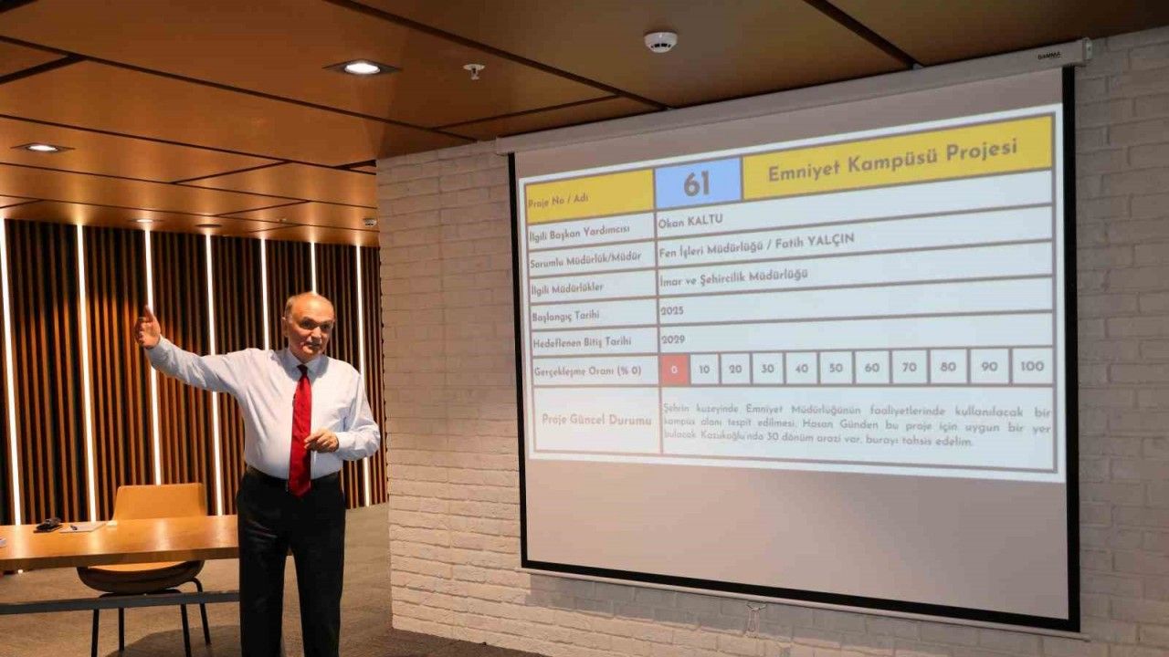 Başkan Özlü, "13 projeyi tamamladık, 8 proje bitmeye çok yakın. 38 proje yüzde 30 seviyesinde, 16 proje yüzde 60 aşamasında. 5 projeyi çıkardık, 2 projeyi birleştirdik, 3 yeni proje ekledik. Hiç başlamadığımız 20 proje var. Şu anda toplam 98 projeyle devam ediyoruz ve kısa sürede yeniden 100’e tamamlayacağız" ifadelerini kullandı.