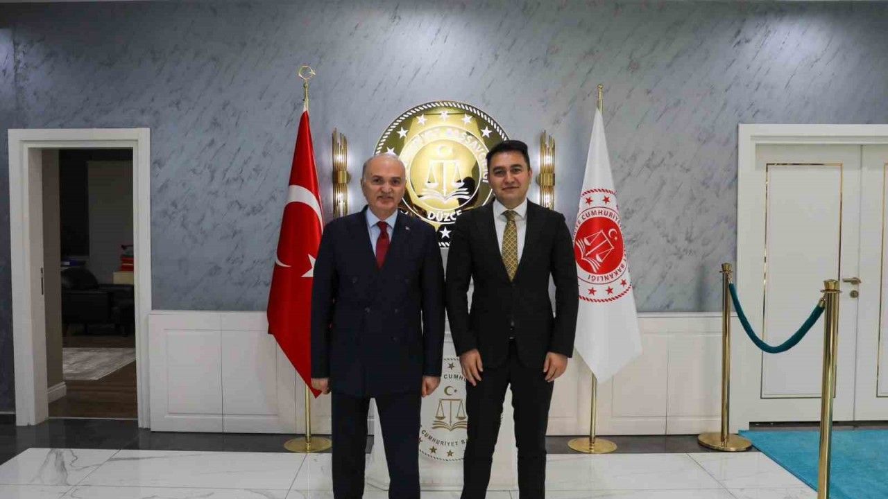 Düzce Belediye Başkanı Faruk Özlü, Cumhuriyet Başsavcısı Yasin Emre’yi ziyaret etti.