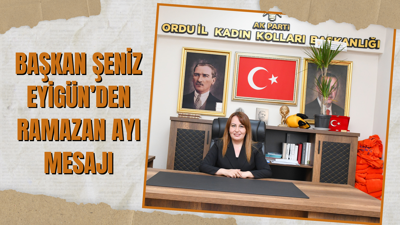 AK Parti Ordu İl Kadın Kolları Başkanı Şeniz Eyigün, Ramazan ayının başlaması dolayısıyla bir mesaj yayımladı. Eyigün, paylaşımında Ramazan’ın birlik, beraberlik ve dayanışma ayı olduğunu vurgulayarak, tüm Ordu halkına hayırlı ve bereketli bir Ramazan temennisinde bulundu.