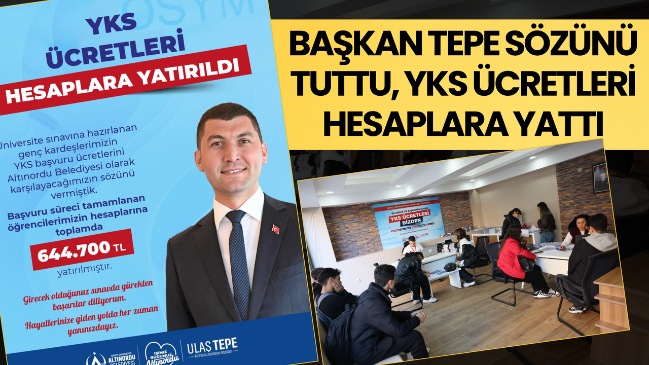 Seçim döneminde Yükseköğretim Kurumları Sınavı (YKS) başvuru ücretlerinin Altınordu Belediyesi tarafından karşılanacağı sözünü kamuoyuyla paylaşan Altınordu Belediye Başkanı Ulaş Tepe, üniversite adaylarına verdiği sözü tutarak, sınav ücretlerinin öğrencilere geri ödenmesine yönelik önemli bir sosyal destek uygulamasını hayata geçirdi. Gençlerin eğitim sürecinde karşılaştıkları ekonomik yükü hafifletmek amacıyla yürütülen çalışma kapsamında, başvuruları alınan öğrencilerin sınav ücretleri Altınordu Belediyesi tarafından IBAN numaralarına aktarıldı. Sosyal Hizmetler Müdürlüğü tarafından yapılan incelemelerin ardından başvurusu onaylanan öğrencilerin hesaplarına 700 TL ile 1400 TL arasında değişen YKS başvuru ücretleri yatırıldı. Uygulama kapsamında toplam 644 bin 700 TL ödeme yapılarak üniversite adaylarına doğrudan destek sağlandı.