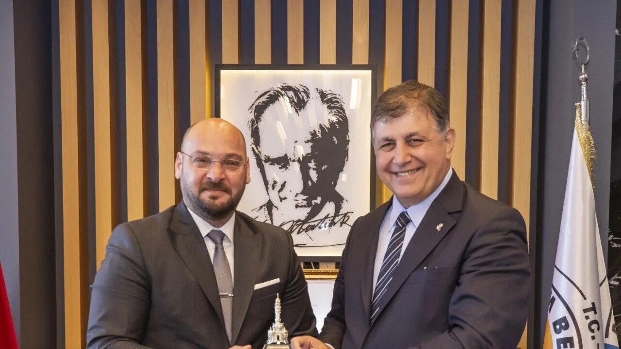 19 Mayıs Atatürk’ü Anma, Gençlik Spor Bayramı kapsamında ziyaretler için Samsun’a gelen İzmir Büyükşehir Belediye Başkanı Dr. Cemil Tugay, Atakum Belediye Başkanı Serhat Türkel’i ziyaret etti. Tarihi bir günde gerçekleşen ziyaretten duydukları memnuniyeti dile getiren her iki belediye başkanı, birbirlerine başarılar diledi. Atakum Belediyesi’nin çalışmalarını yakından takip ettiğini söyleyen Başkan Tugay, iki belediyenin her zaman iş birliği ve dayanışma içerisinde hareket edeceğini söyledi.