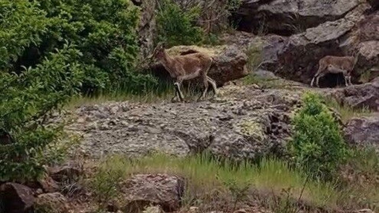 Bayburt’ta bir vatandaş, Üzengili köyü yakınlarında rastladığı dağ keçilerine uzaktan seslenerek, yol tarif etti. O anları kayda alan vatandaş, dağ yamacındaki keçileri "Aşağı inmeyin, düşersiniz" diyerek uyardı. Cep telefonu kamerasına yansıyan görüntüler, yüzlerde tebessüm oluşturdu.
