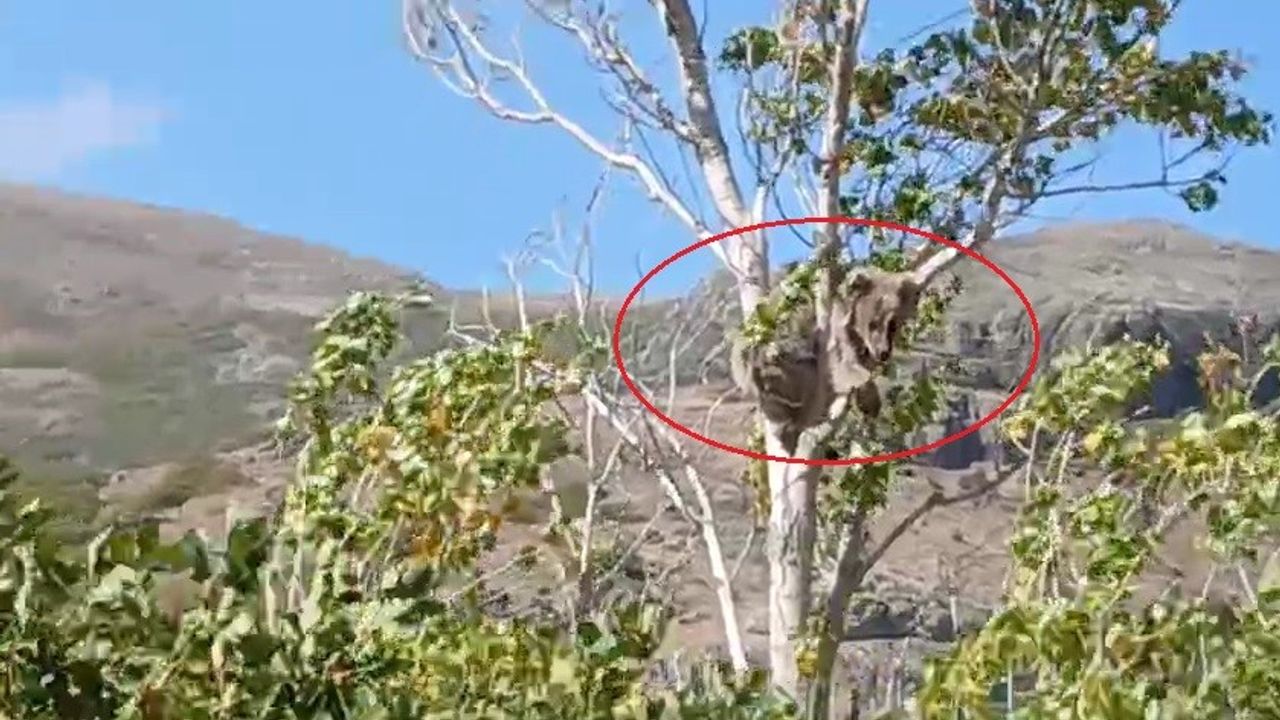 Bayburt’un Aydıntepe ilçesine bağlı Sırataşlar köyünde annesi olmadan dolaşan ve köy sakinlerini tedirgin eden yavru ayı, bu kez bir ağacın tepesinde görüldü. Köpeklerin kovalaması sonucu ağaca tırmanan ve burada bekleyen yavru ayı, Doğa Koruma ve Milli Parklar (DKMP) ekipleri ile köylüleri seferber etti. Yavru ayıyı kurtarma girişimi, ayının ağaçtan atlayarak dağlık alana kaçmasıyla son buldu. O anlar, köy sakinlerinin cep telefonu kamerasına yansıdı.
