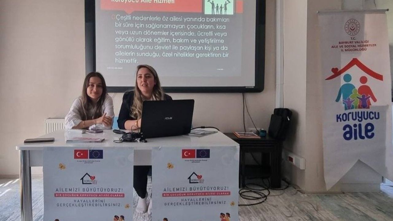 Bayburt İl Müftülüğü personeline yönelik ’Koruyucu Aile Farkındalık Eğitimi’ düzenlendi. Bayburt Aile ve Sosyal Hizmetler İl Müdürlüğü tarafından organize edilen eğitim programında, Uzman Öğretmen Semra Türkoğlu ve Sosyal Çalışmacı Büşra Baş sunum yaptı.