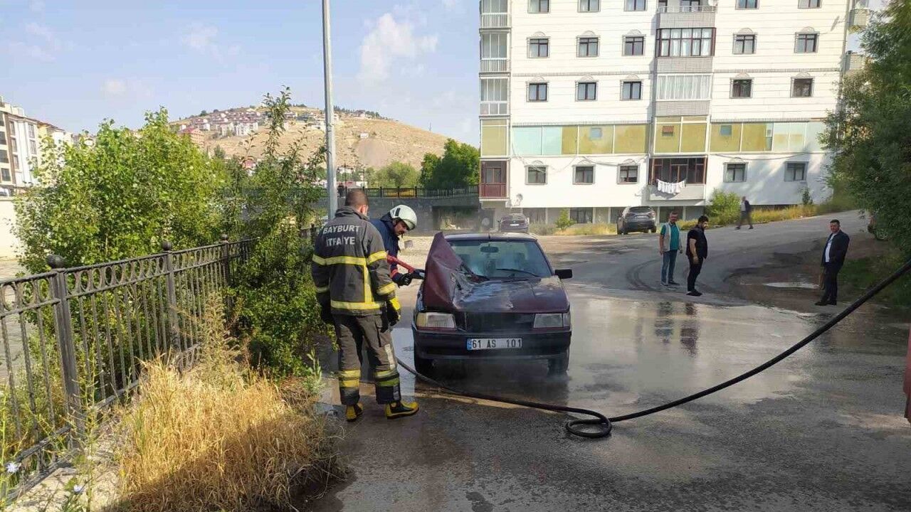 Bayburt’ta Taş Köprü civarında park halinde bulunan bir otomobilde çıkan yangın, itfaiye ekiplerinin hızlı müdahalesiyle söndürüldü. Yangının çıkış sebebinin aracın elektrik aksamındaki bir arızadan kaynaklandığı belirlendi.