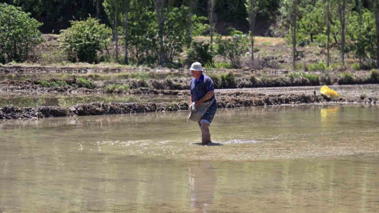 Gömeç, İhlas Haber Ajansı muhabirine yaptığı açıklamada, 20 gündür devam eden çeltik ekiminde son haftaya girdiklerini söyledi.
