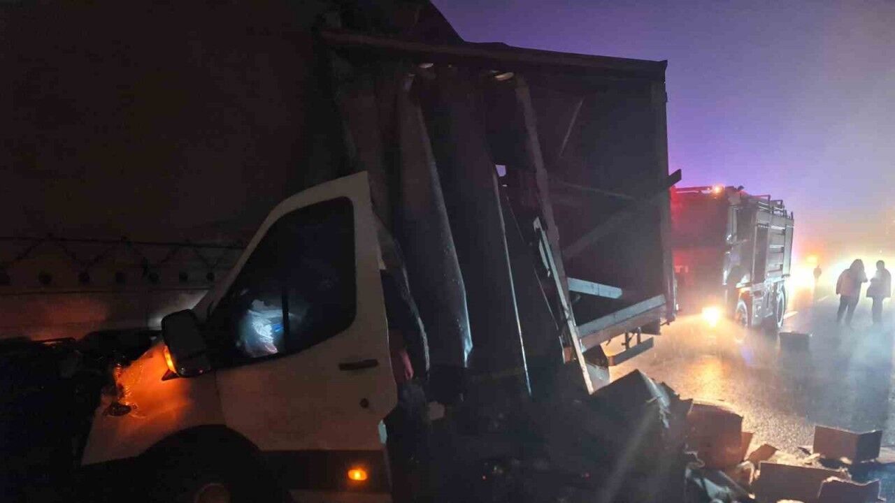 Kaza, dün saat 20.40 sıralarında TEM Otoyolu’nun Bolu geçişinde İstanbul istikametinde meydana geldi. Edinilen bilgiye göre, A.Y. (56) idaresindeki 06 CHS 130 plakalı tırla arkasından gelen M.E. (24) yönetimindeki 27 ATR 733 plakalı tır çarpıştı. İlk çarpışmanın ardından her iki araç da sağ şerit üzerinde beklemeye geçti. Bu esnada aynı istikametten gelen Y.G. (52) idaresindeki kamyonet, kaza nedeniyle durmakta olan 27 ATR 733 plakalı tırın dorsesine çarptı. Kazada kamyonet sürücüsü Y.G. araçta sıkışarak yaralandı. Yaralı, olay yerine sevk edilen sağlık ekipleri tarafından Köroğlu Devlet Hastanesi’ne kaldırıldı. Kaza nedeniyle otoyolda kısa süreli aksama yaşanırken, araçların kaldırılmasının ardından yol tekrar üç şerit olarak trafiğe açıldı.