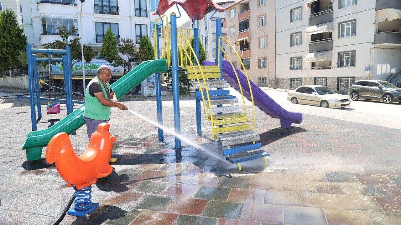 Canik Belediyesi, çocuklar ile ailelerin sağlığı ve güvenliği için ilçede yer alan ortak yaşam alanlarında temizlik ve bakım çalışmalarını sürdürüyor. İlçede yer alan parklarda düzenli olarak yıkama, yabani ot temizleme ve çim biçme çalışmalarını sürdüren belediye ekipleri, parklarda yer alan spor ve oyun alanlarının bakım ve onarım işlemlerini gerçekleştiriyor.