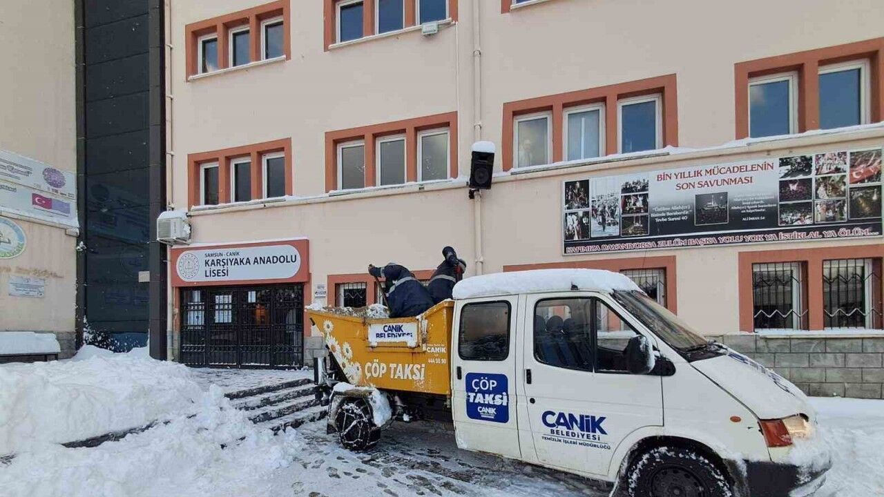 Samsun’un Canik Belediyesi ekipleri, Milli Savunma Üniversitesi (MSÜ) Askeri Öğrenci Aday Belirleme Sınavı merkezleri ve ilçe ulaşım güzergahlarında seferberlik halinde karla mücadele çalışması gerçekleştirdi.