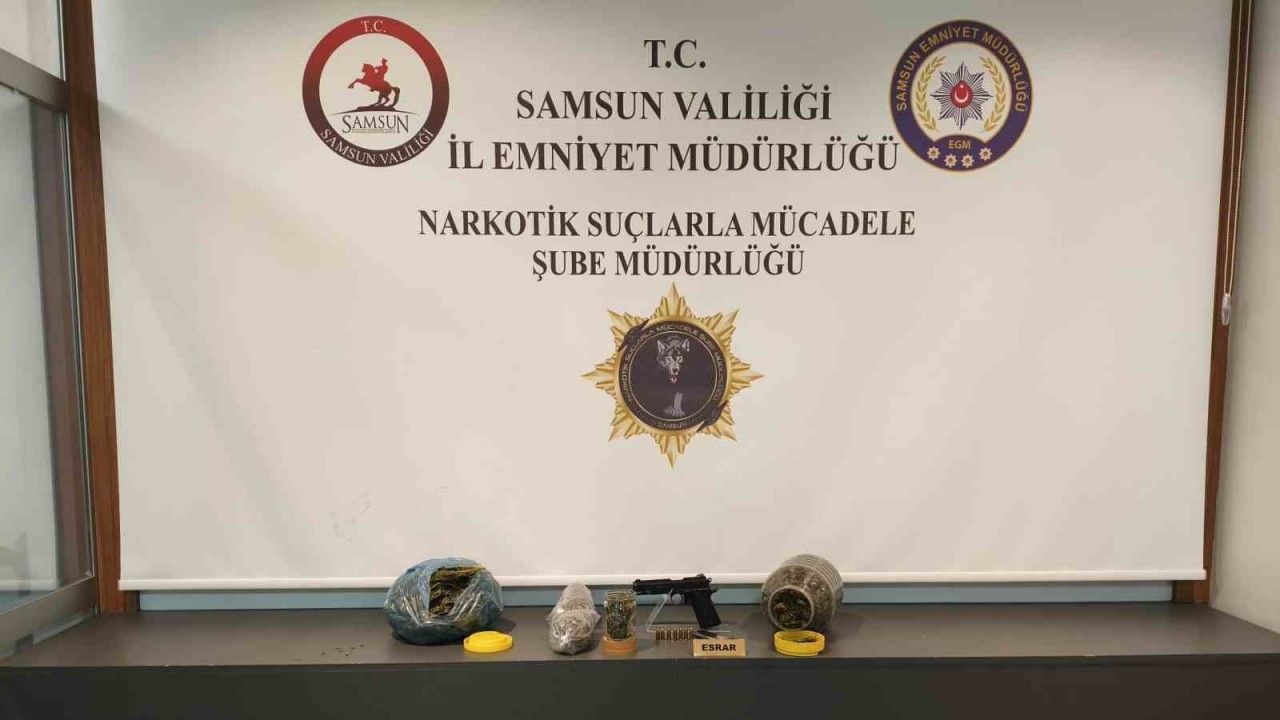 Samsun İl Emniyet Müdürlüğü Narkotik Suçlarla Mücadele Şube Müdürlüğü ekiplerince uyuşturucu madde ticareti yaptığı değerlendirilen şahıslara yönelik İlkadım ilçesinde operasyon düzenlendi. Belirlenen adreste ve çatı katında yapılan aramalarda 2 kilo 40 gram esrar, 100 gram esrar tohumu, 1 ruhsatsız tabanca ve 7 tabanca fişeği ele geçirildi. Şüpheli A.D. (55) yakalanarak gözaltına alındı. Olayla ilgili soruşturma çok yönlü olarak sürüyor.