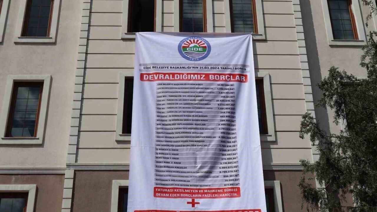 Kastamonu’nun Cide ilçesinde 31 Mart Yerel Seçimleri’nde Cide Belediye Başkanı seçilen MHP adayı Nejdet Demir, CHP’li Belediye Başkanı Mehmet Eşref döneminden kalan belediye borcunu belediye binasına astırdığı dev afişle duyurdu. Asılan afişte Cide Belediyesi’nin hesaplanan borcunun 99 milyon 337 bin 147 TL olduğu belirtildi. Konu ile ilgili açıklama yapan Başkan Demir, “Faturası henüz kesilmeyen ve mahkeme süreci devam eden borçların faizleri bu rakama henüz dahil değildir. Bu rakam önümüzdeki süreçte revize edilecektir" dedi.