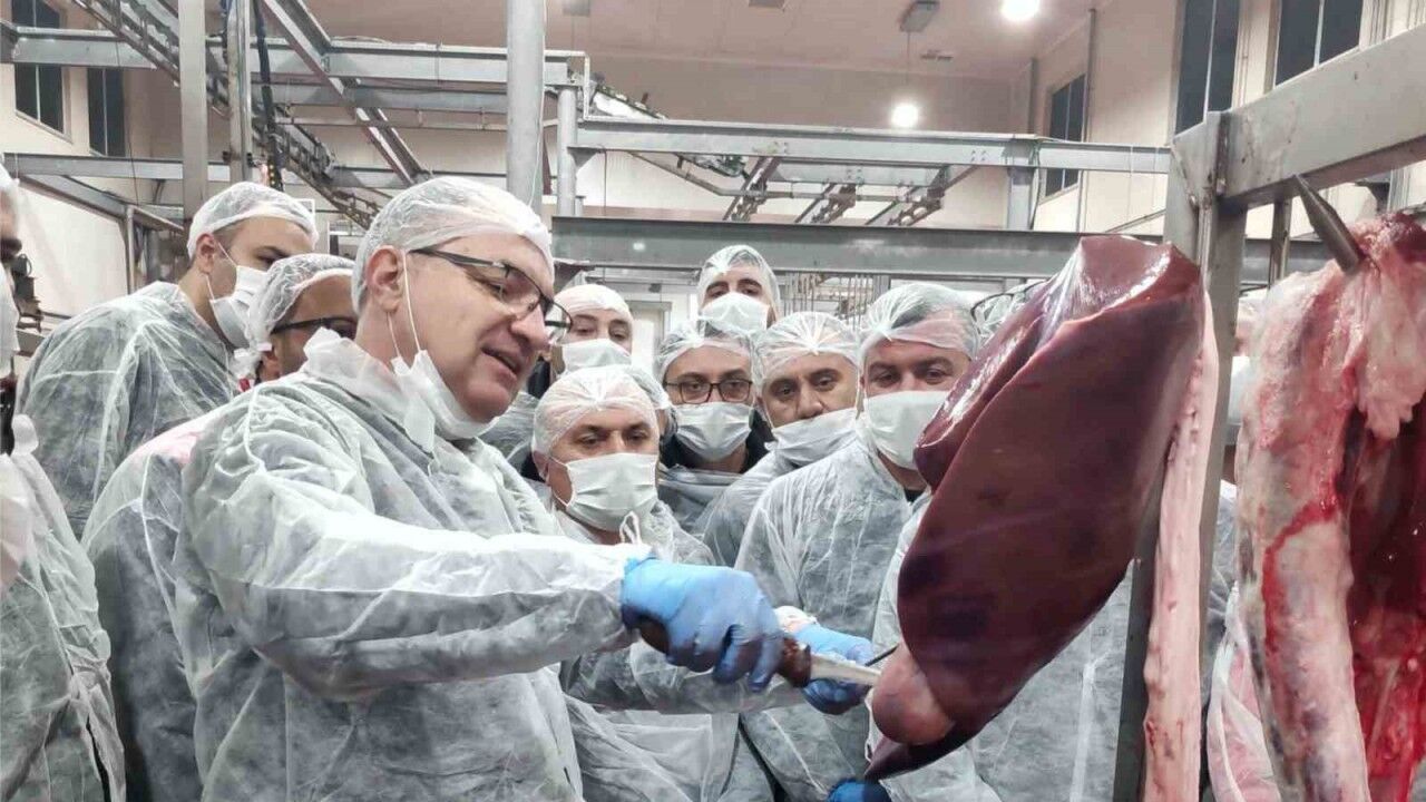 Teorik eğitimin ardından, uygulamalı eğitim için Çorum Belediyesi Halk Et Kombinasına ziyaret gerçekleştiren katılımcılar, kesim öncesi ve kesimi yapılan hayvanların tüm aşamalarına dair bilgi edindi.