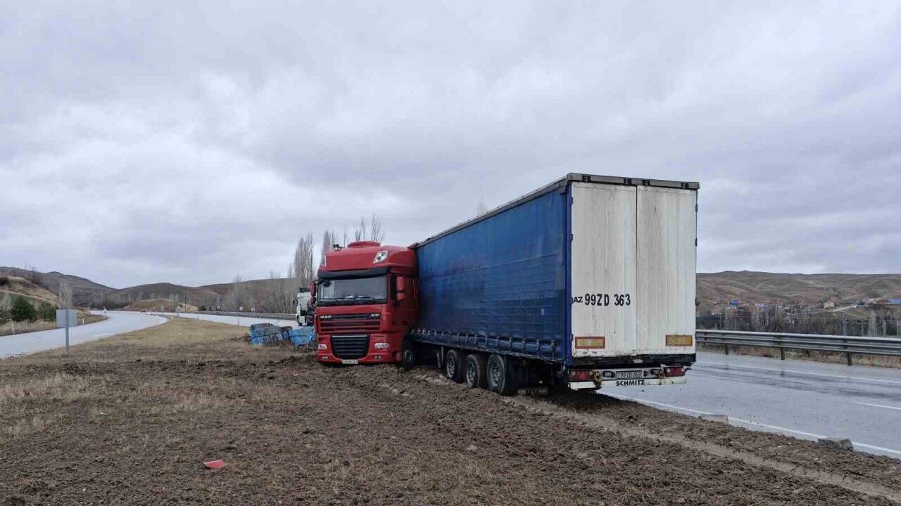 Çorum’un Alaca ilçesi yakınlarında, sürücüsün kontrolünden çıkan çelik halat yüklü tır orta refüje çıktı.