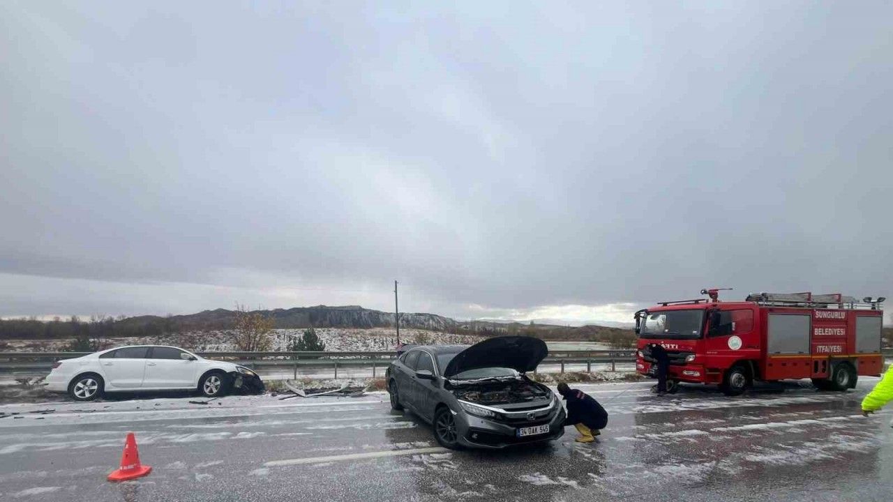 Çorum’da aniden bastıran yoğun dolu yağışı, Çorum-Sungurlu karayolunda kazalara neden oldu. Kayganlaşan yolda meydana gelen biri zincirleme iki ayrı kazada 10 kişi yaralandı.